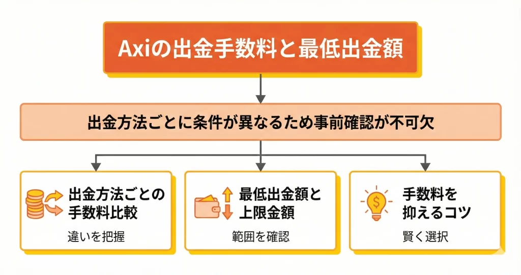 Axiで利益が出たのでいざ出金しようとしたものの、「どの方法を選べばいいのか」「手数料はいくらか」「本当に着金するのか」と不安になる方は少なくありません。