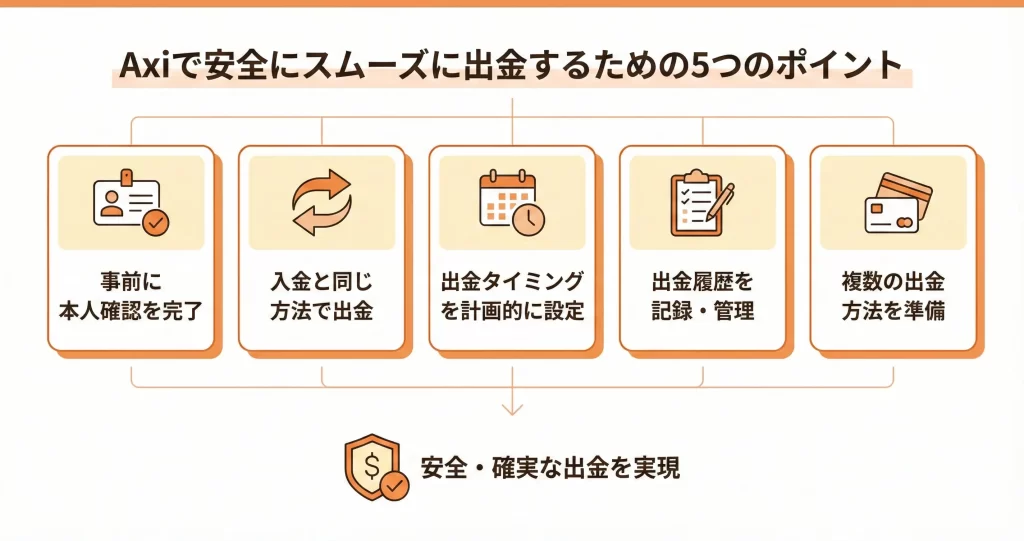Axiからの出金を確実に成功させるためには、手順を理解するだけでなく、事前準備や管理方法にも配慮が必要です。