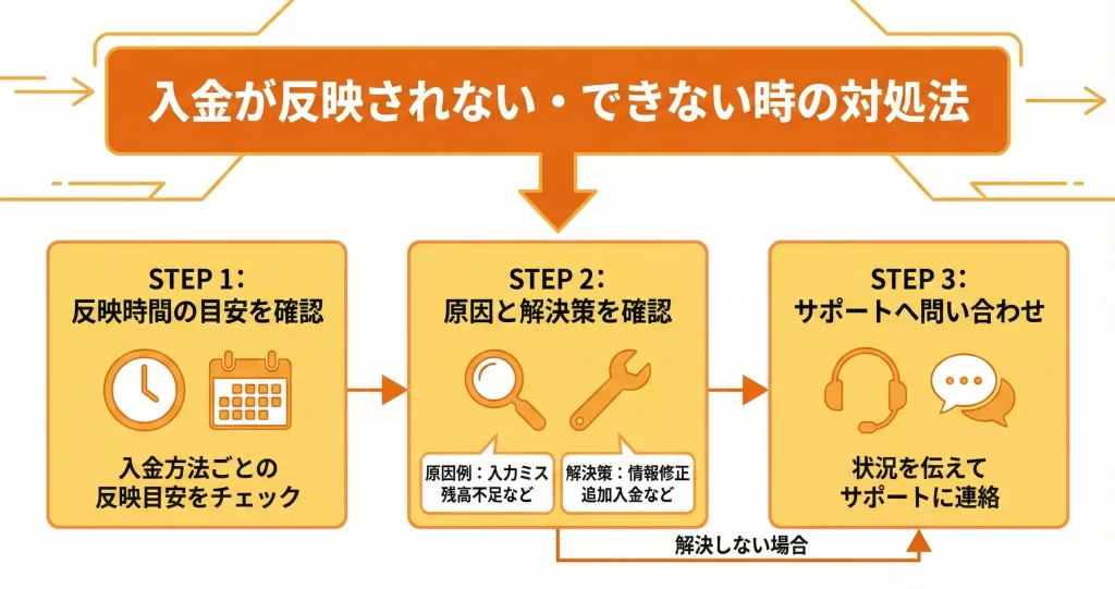 入金トラブルは焦らず、まずは反映時間と入力情報の確認から始めましょう
