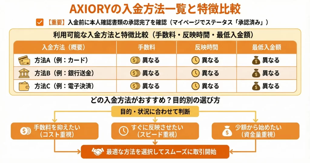 AXIORYの入金方法一覧と特徴比較