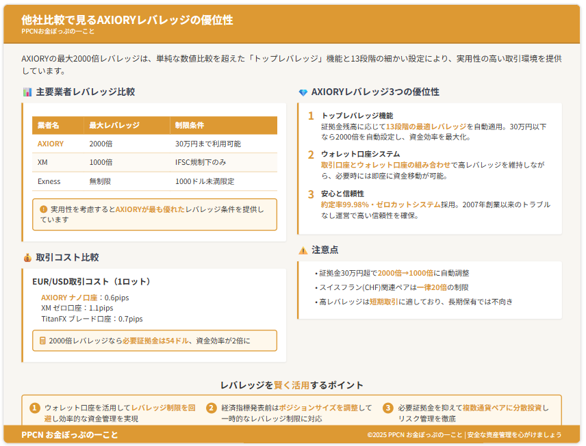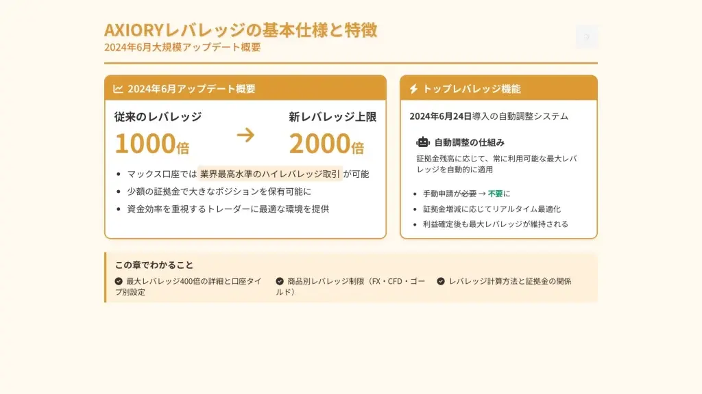 AXIORYのレバレッジシステムの最大の特徴は、2024年6月24日に導入された「トップレバレッジ」機能です。