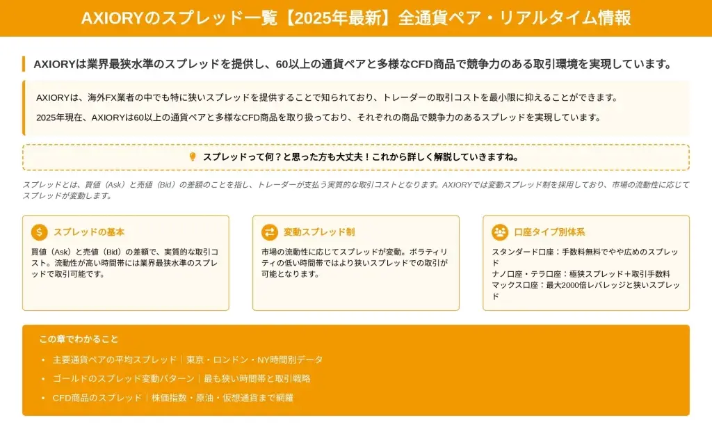 AXIORYのスプレッド一覧【2025年最新】全通貨ペア・リアルタイム情報