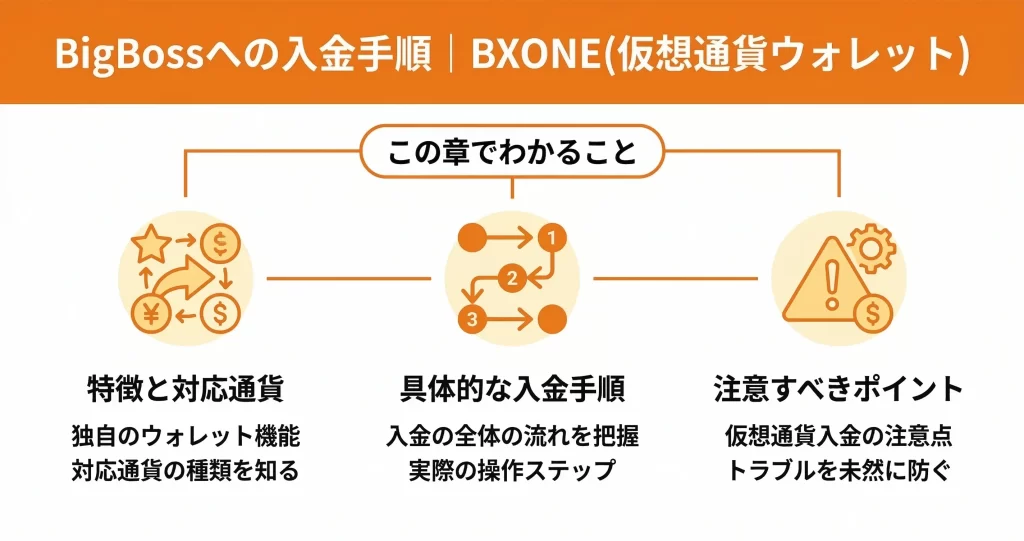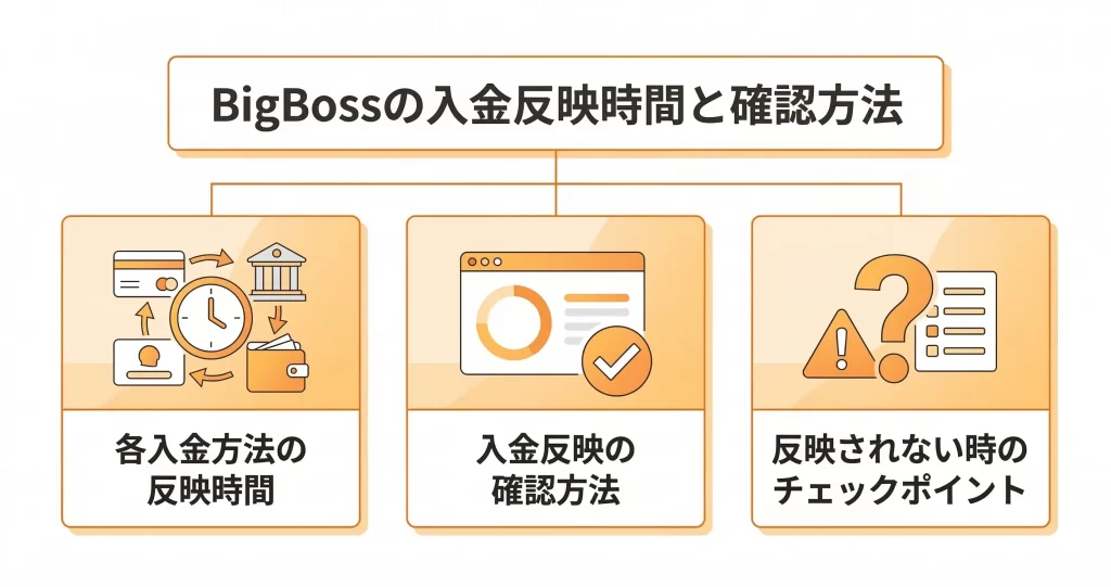 BigBossへの入金では、最低入金額や手数料、反映時間など、実際に手続きを進める際に気になるポイントが多く出てきます。