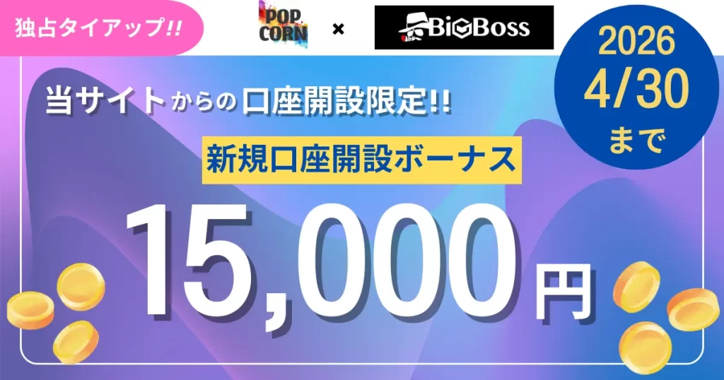 4/30まで新規口座開設ボーナスをBigbossでは実施中。
