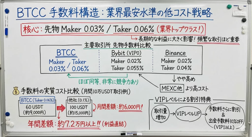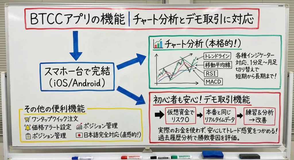 高レバレッジを活用したい方や、手数料を抑えて頻繁に取引したい方にはBTCCの特徴が合っていますね。