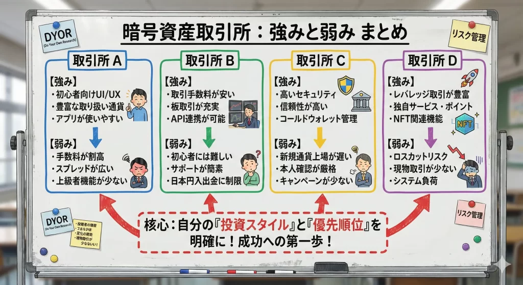上記のチェックリストで当てはまる項目が少ない場合、特に「リスク理解と経験」の項目で不安がある場合は、まず国内の金融庁登録済み取引所での経験を積むか、より日本語サポートが充実した海外取引所を検討することをお勧めします。