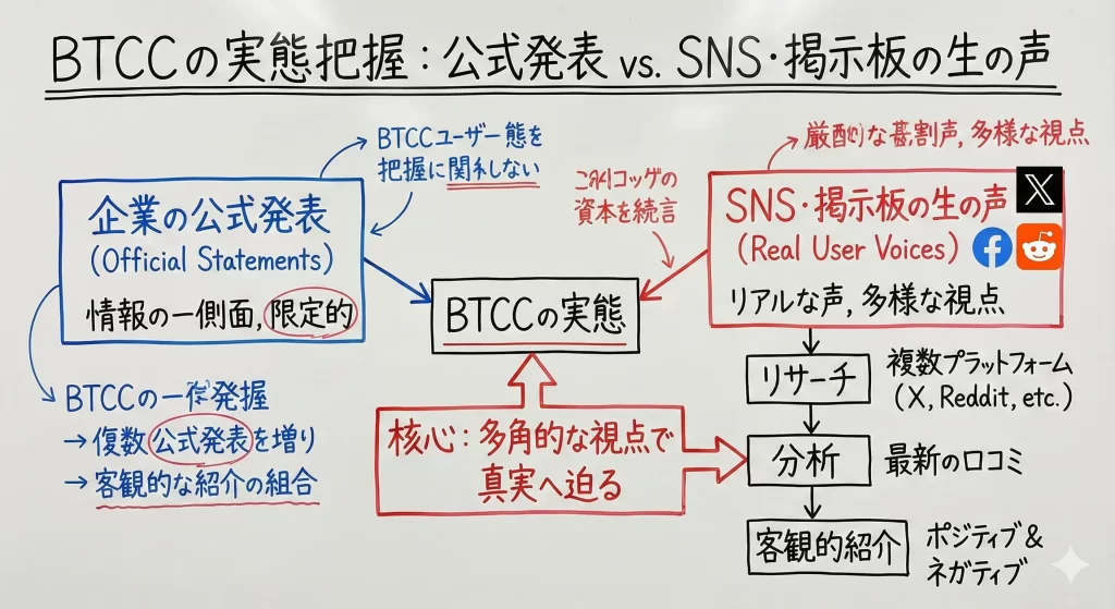 本記事では、SNSや掲示板に投稿された生の声を含め、BTCCのリアルな評判を多角的に検証していきます。