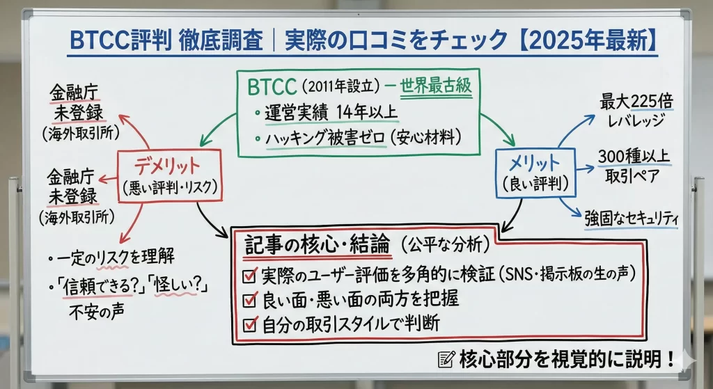 この記事を読めば、BTCCの信頼性を客観的に判断でき、自分の取引スタイルに合っているかを見極められるようになります。