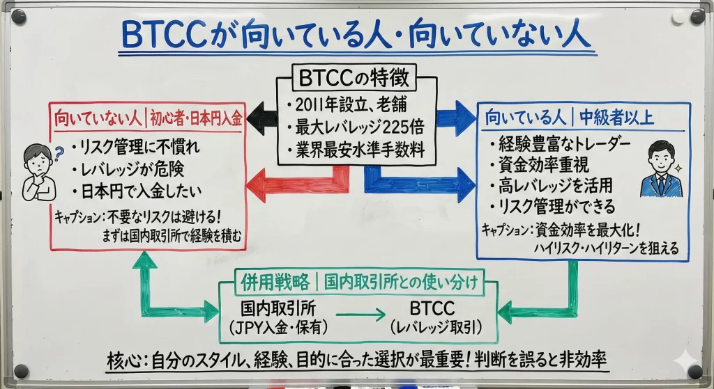 ここでは記事全体を通じて得られた情報を整理し、BTCCを利用すべきか否かを最終判断するための材料を提供します。
