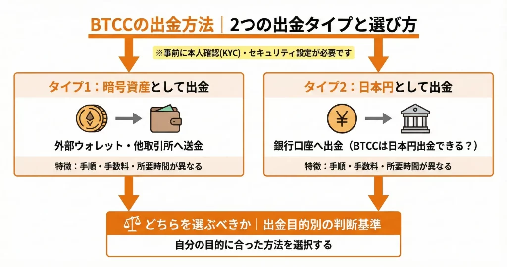 BTCCの出金方法|2つの出金タイプと選び方