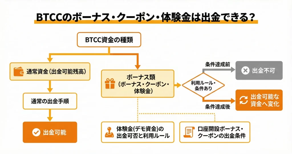 BTCCのクーポンやボーナスは出金できますか?