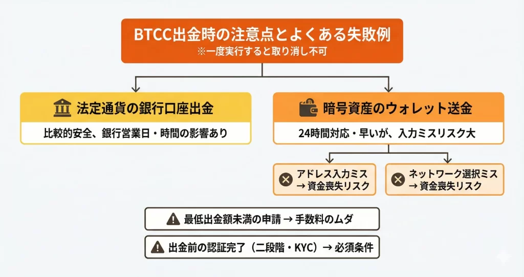 BTCC出金時の注意点とよくある失敗例