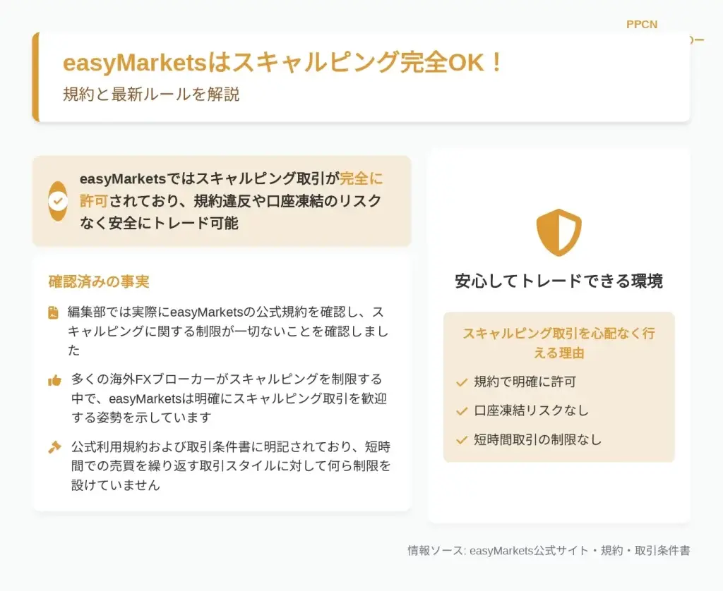 easyMarkets(イージーマーケッツ)でスキャルピング取引を検討している方にとって、最も重要な疑問は「本当にスキャルピングが許可されているのか」という点でしょう。