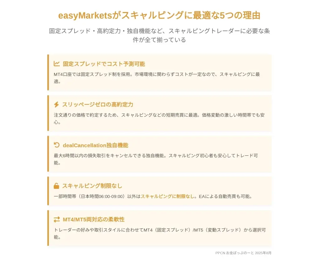 2025年現在、海外FX市場では多くのブローカーがスキャルピングに対して何らかの制限を設けている中で、easyMarketsは真にスキャルピングフレンドリーな環境を提供している稀有な存在です。