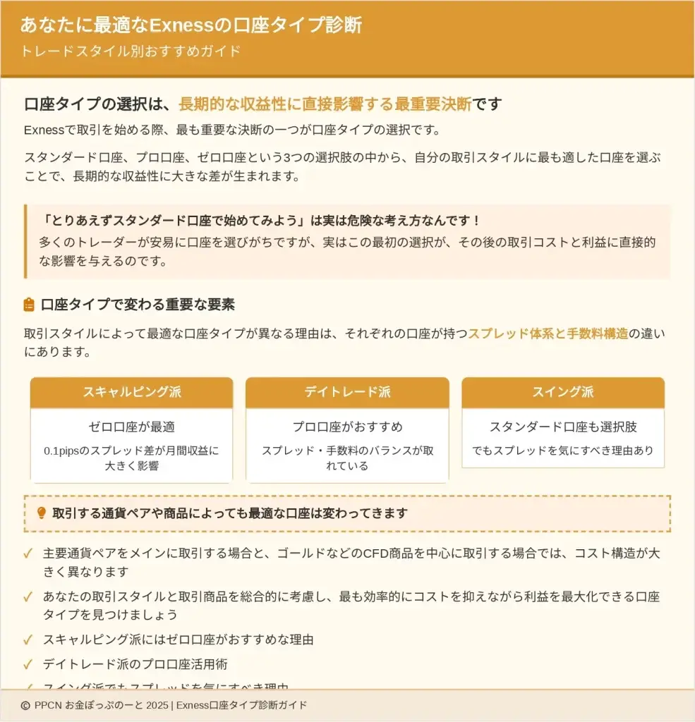 この記事を読めば、あなたの取引スタイルに最もコストが安い口座タイプを選択でき、無駄な手数料を削減して利益を最大化できるようになります。