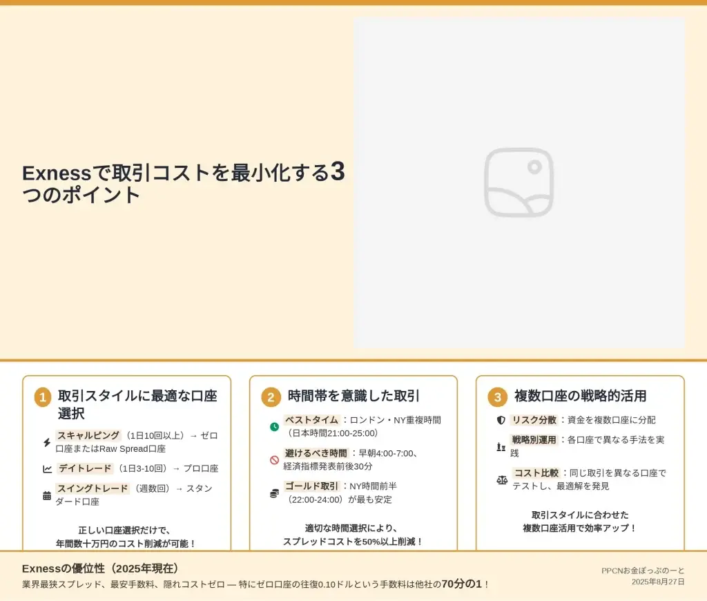 Exnessで取引コストを最小化し、利益を最大化するための実践的な3つのポイントをまとめます。