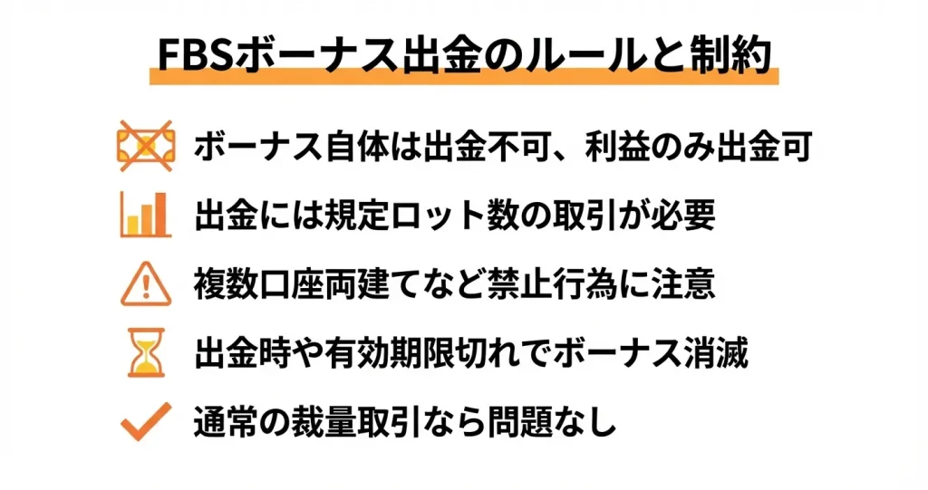 FBSのボーナス制度は魅力的な一方で、出金条件や利用制限について不安を感じる方も多いでしょう。