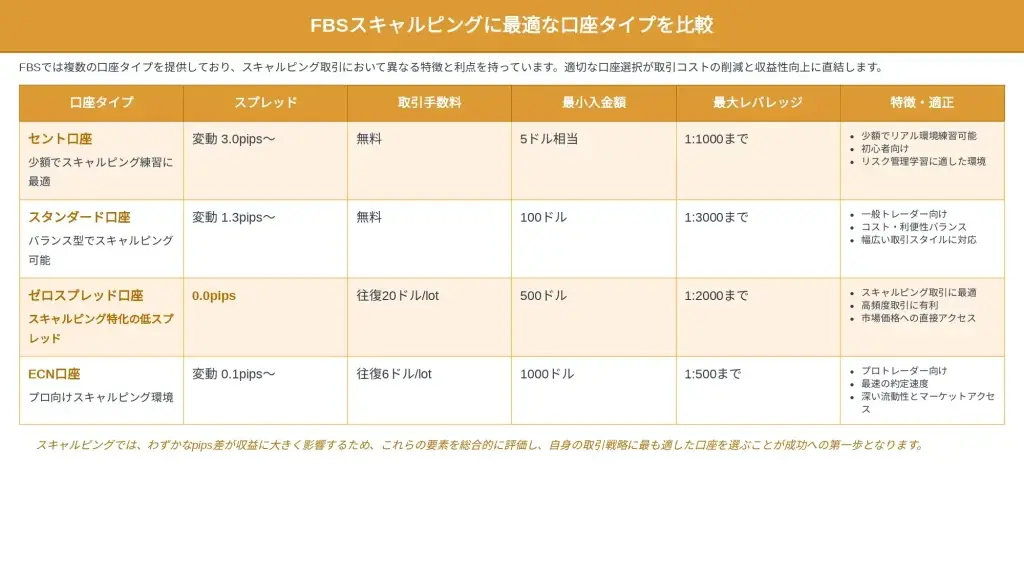 FBSでスキャルピングを成功させる第一のポイントは、自分の資金規模と取引スタイルに最適な口座タイプを選択することです。