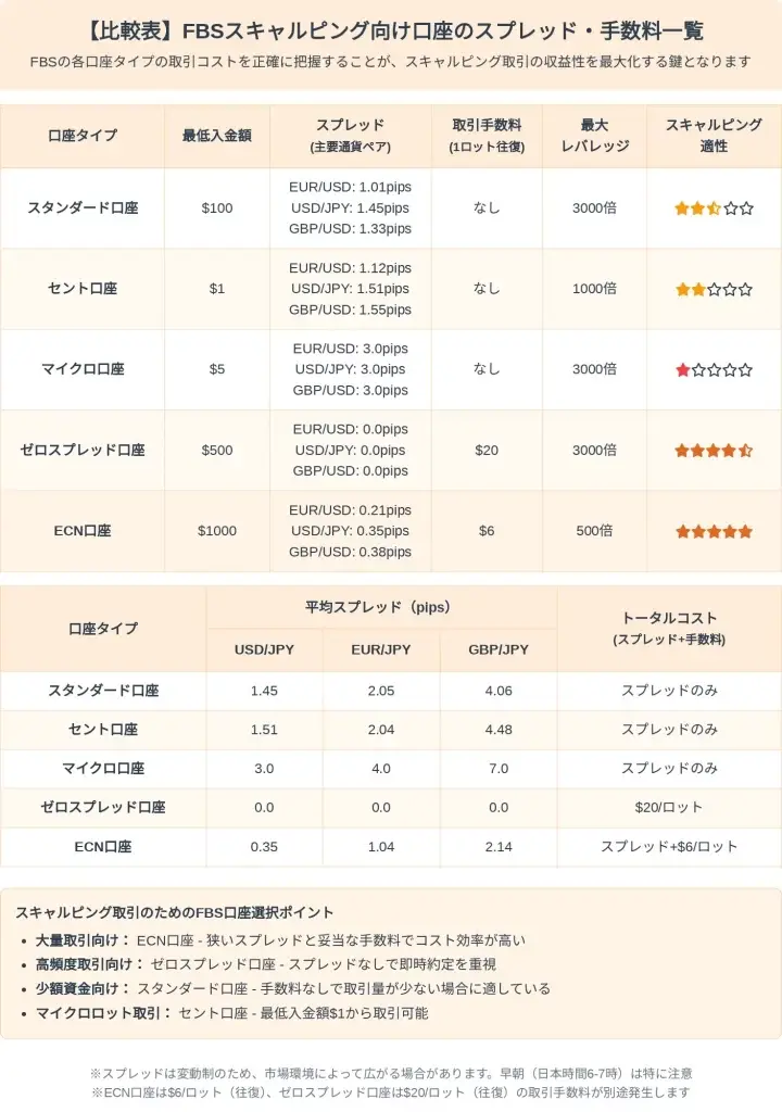 この記事では、FBSのスキャルピング規約の詳細から、セント・スタンダード・ゼロスプレッド・ECNの4つの口座タイプ別の特徴、主要通貨ペアのスプレッド比較表、さらには1分足・5分足を使った実践的な取引戦略まで、スキャルピングに必要な全ての情報を網羅的に解説します。