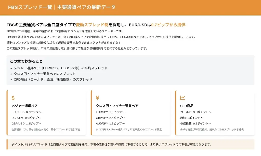 FBSスプレッド一覧|主要通貨ペアの最新データ