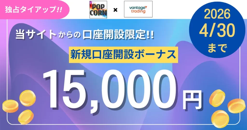 | 2位 Vantage Trading ![]() | 勢い急上昇中のVantage! 口座開設後7日以内の入金で5,000円追加ボーナス! \\15,000円ボーナス// Vantageで口座開設 |