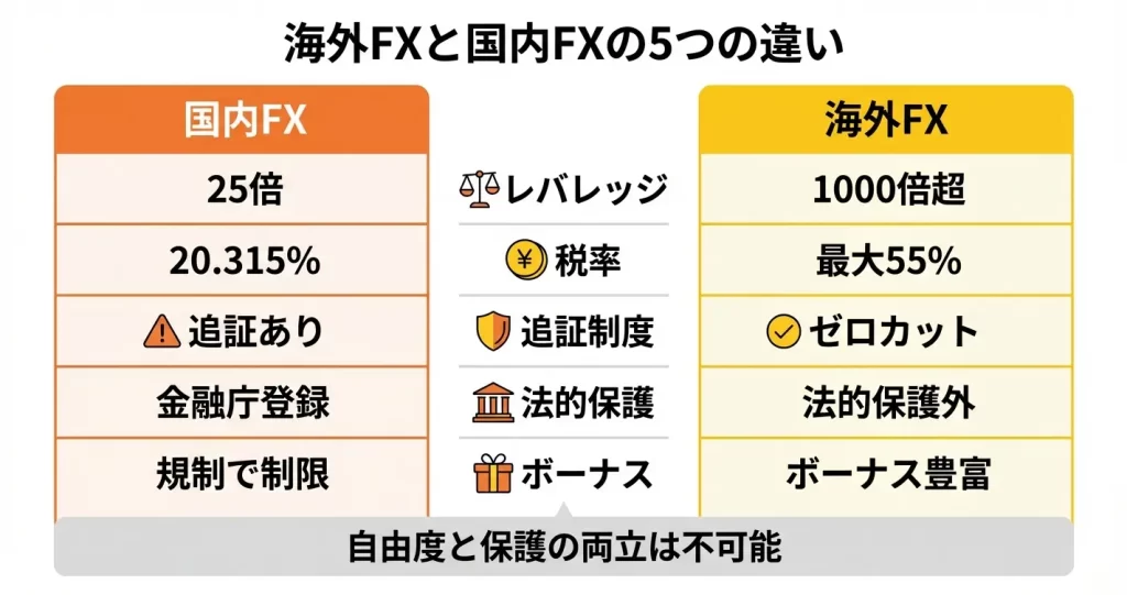 国内FX業者には顧客資産の全額信託保全が法律で義務付けられていますが、海外FX業者にはそうした規制が存在しない、または緩やかな基準にとどまっています。