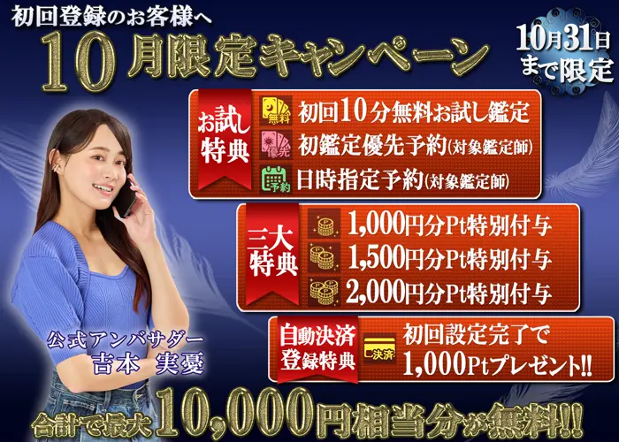 - 今なら新規会員登録で初回10分の鑑定が無料