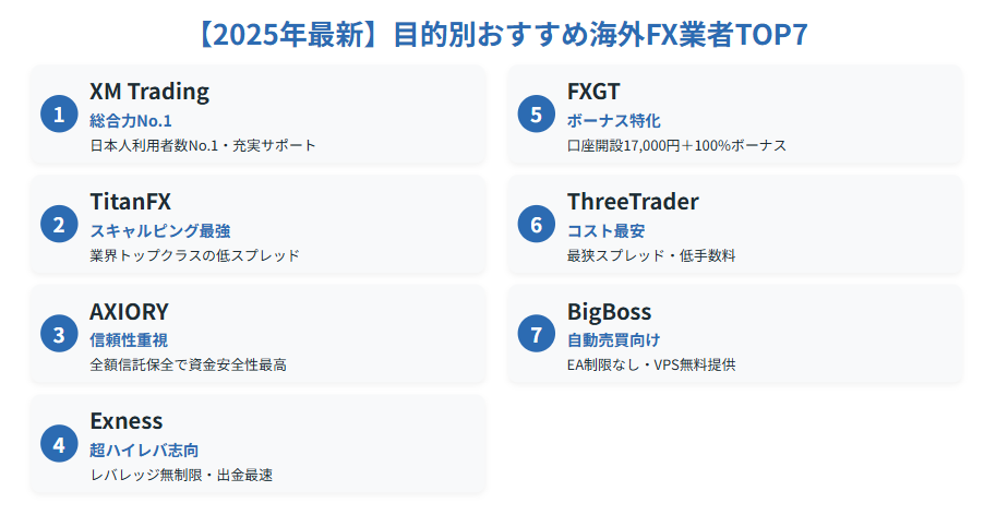 【2025年最新】目的別おすすめ海外FX業者ランキングTOP7