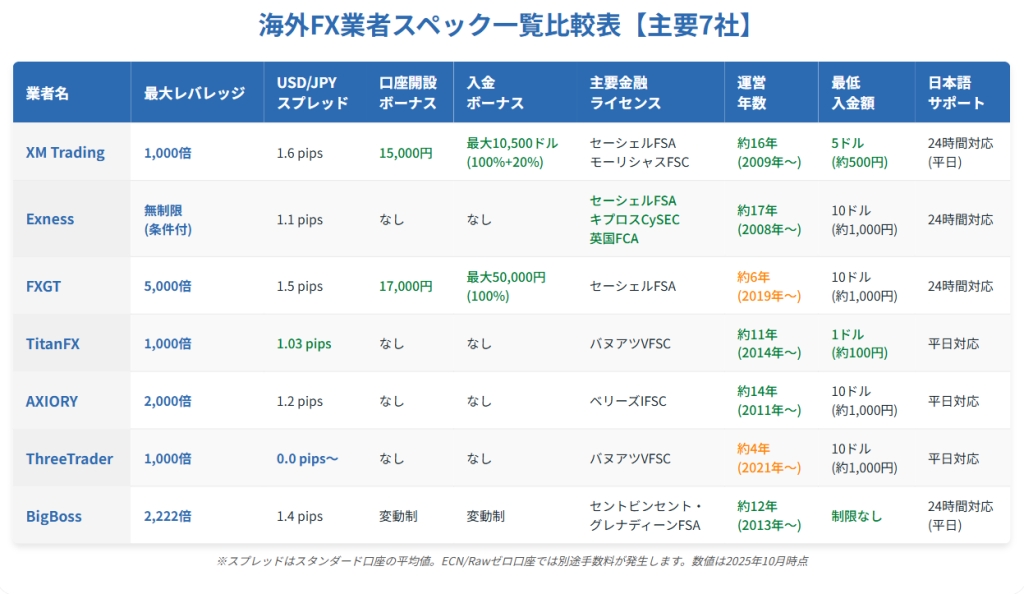この記事では、2025年最新の情報をもとに、XM Trading・TitanFX・AXIORYなど主要7社を徹底比較。