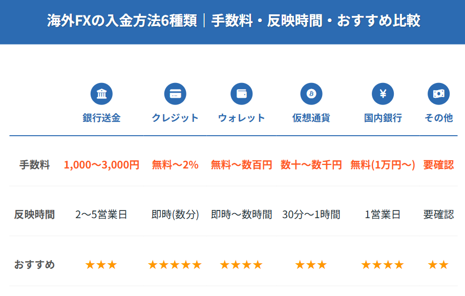 それぞれ手数料や反映時間が異なるため、自分に合った方法を選びましょう。