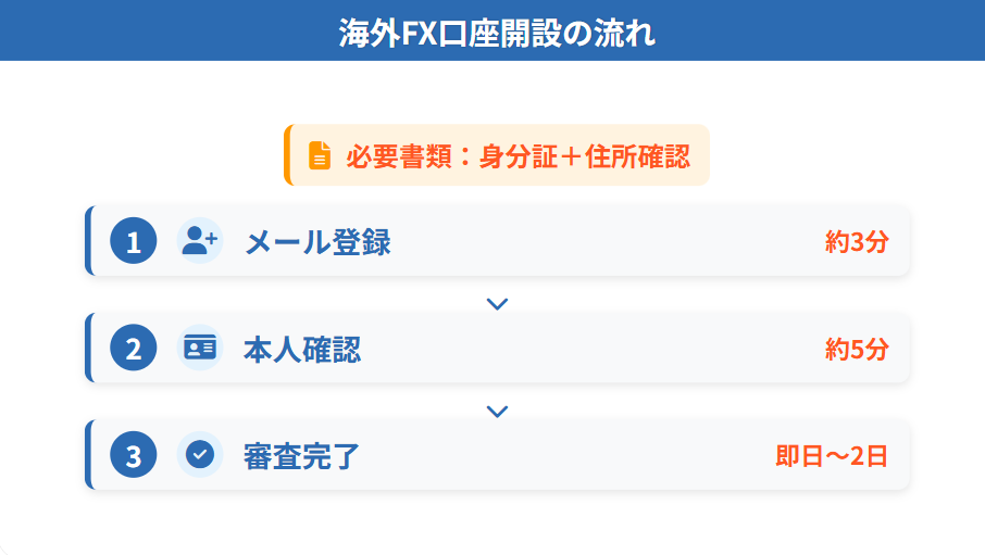多くの業者ではオンラインで書類をアップロードするだけで手続きが完了し、数時間から数日で口座が有効化されます。