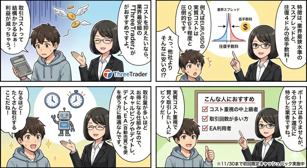 XMは初めての海外FXに選びましたが、日本語サポートが本当に丁寧で助かりました。口座開設ボーナスだけで取引を試せるのも魅力。MT4も使いやすく、困ったときにすぐ相談できる安心感があります。