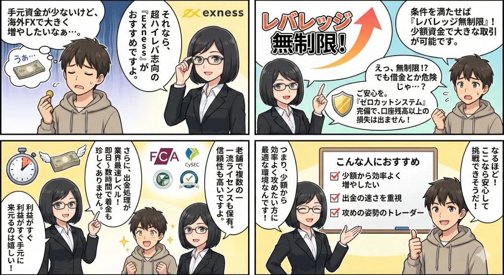 ハイレバレッジは少ない資金で大きな取引ができる反面、リスク管理が重要です。