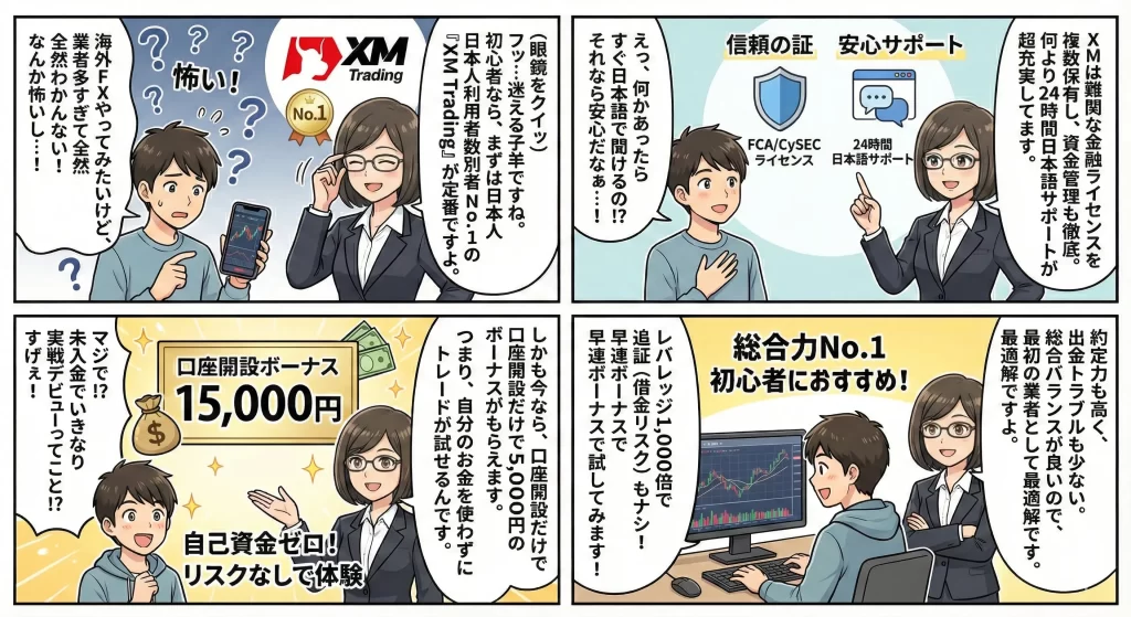 XMtradingは運営実績・ライセンス・サポート体制・ボーナスのバランスが良く、海外FX初心者が最初に選ぶ業者として最適です