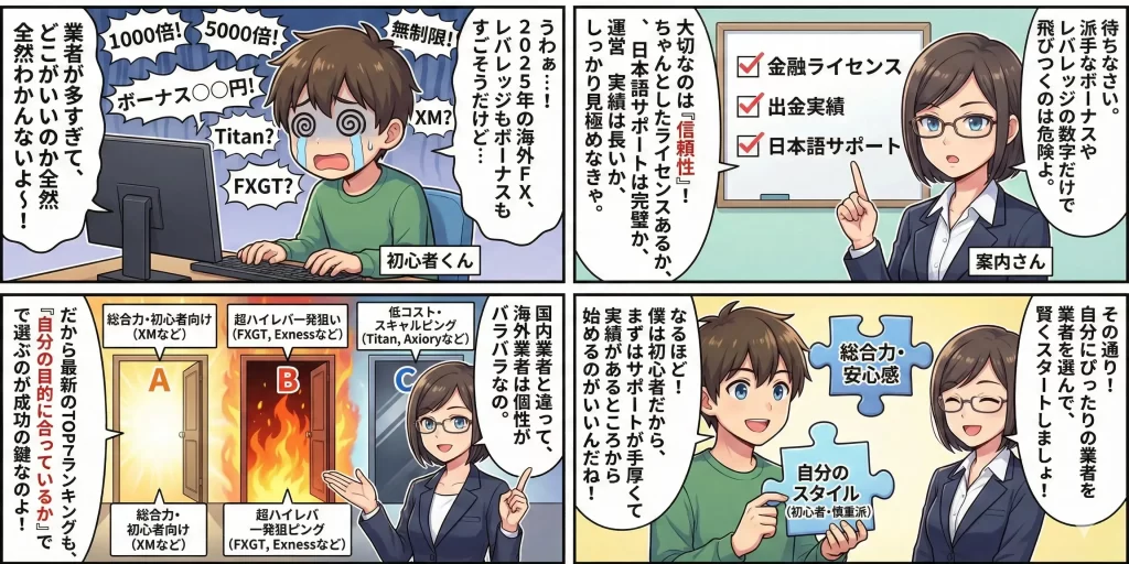 「海外FX業者が多すぎてどれを選べばいいかわからない」