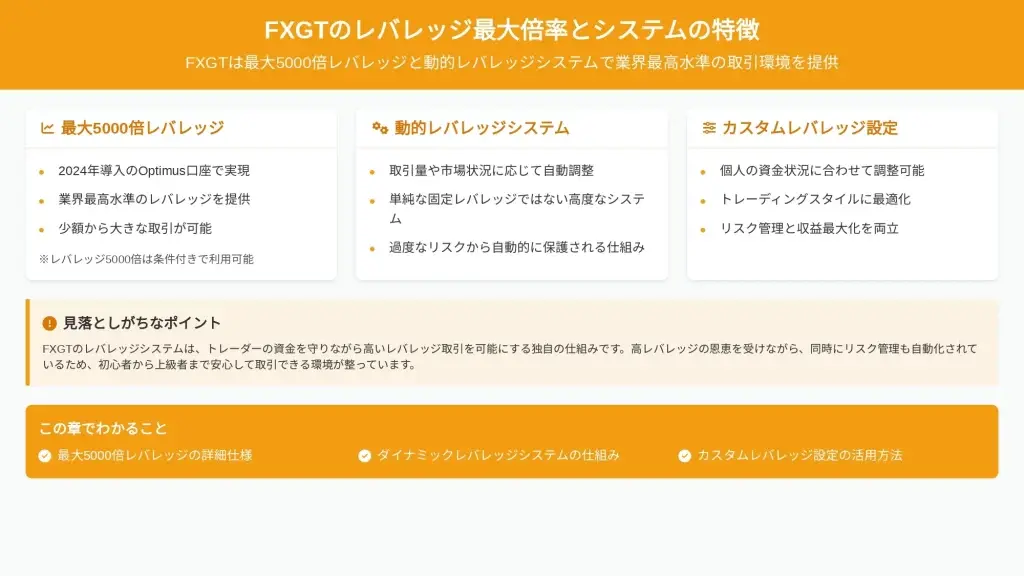 FXGTは最大5000倍レバレッジと動的レバレッジシステムで業界最高水準の取引環境を提供
