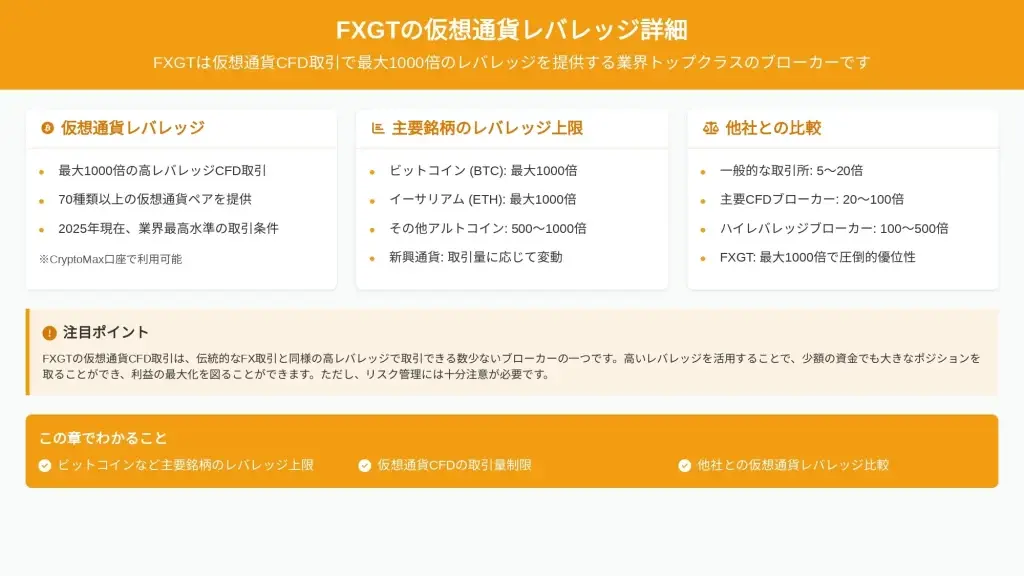 さらに、仮想通貨CFDのレバレッジ条件、必要証拠金の計算方法、マイページでの設定変更手順など、実践的な内容も図解付きで分かりやすく説明。XMやExnessなど主要海外FX業者との比較表も用意しました。