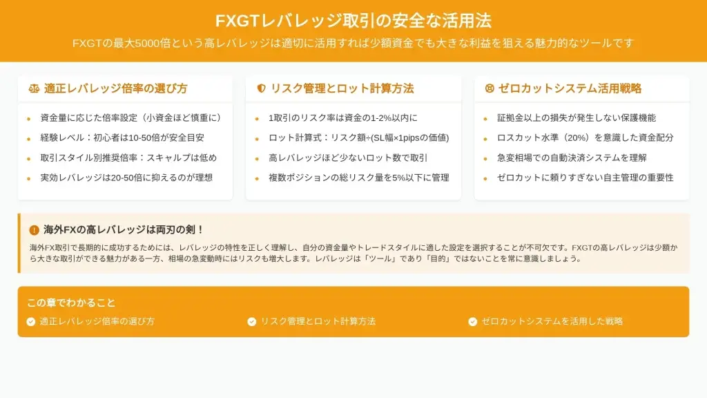 FXGTでの高レバレッジ取引において、適切なロット計算は資金管理の要となります。