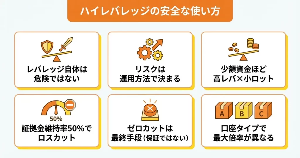 高レバレッジ取引のリスクや安全性、具体的な設定方法など、実際の取引前に確認しておきたいポイントを解説しています。