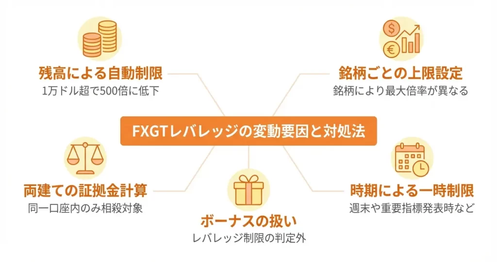 残高が境界線を超えた瞬間に制限が適用されるため、利益確定や入金のタイミングで意図せずレバレッジが下がることがあります。