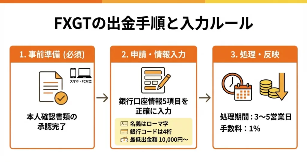 ここまでで、FXGTから出金する際に押さえておくべき基本ルールと事前条件を理解できました。