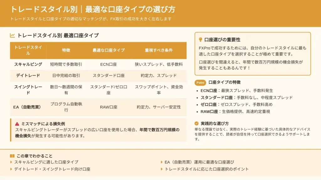 口座タイプの選択は、単なる一時的な決定ではなく、今後の取引成績を大きく左右する重要な戦略的判断です。