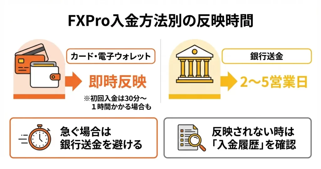 FxProに入金が反映されるまでどのくらい時間がかかりますか?