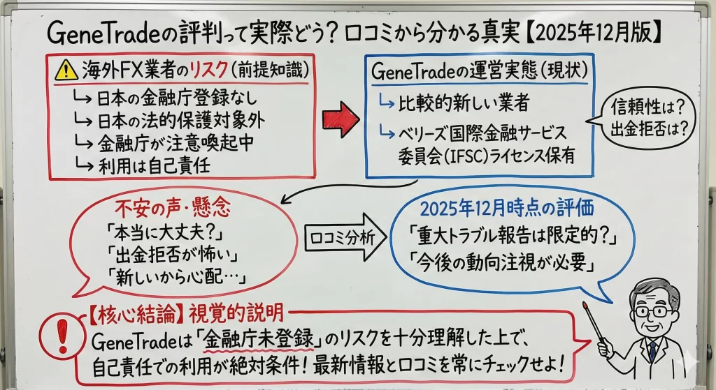 本記事では、GeneTradeの運営実態や金融ライセンスの信頼性、実際のユーザーからの口コミ評判を総合的に分析し、2025年12月時点での最新情報をもとに「使って大丈夫なのか」という疑問に答えます。