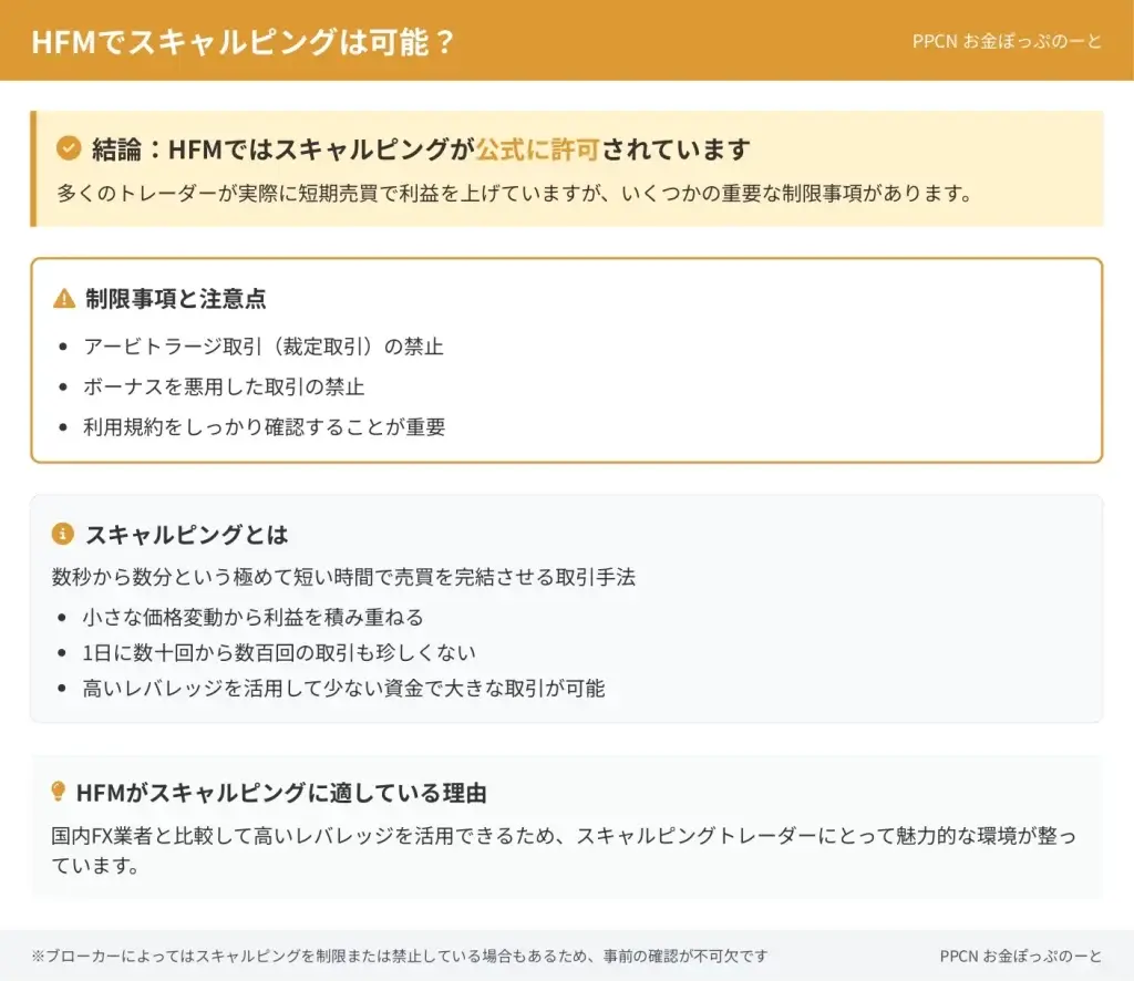以下、HFMでスキャルピングを行う際に注意すべき主要な制限条件と注意点について詳しく解説します。
