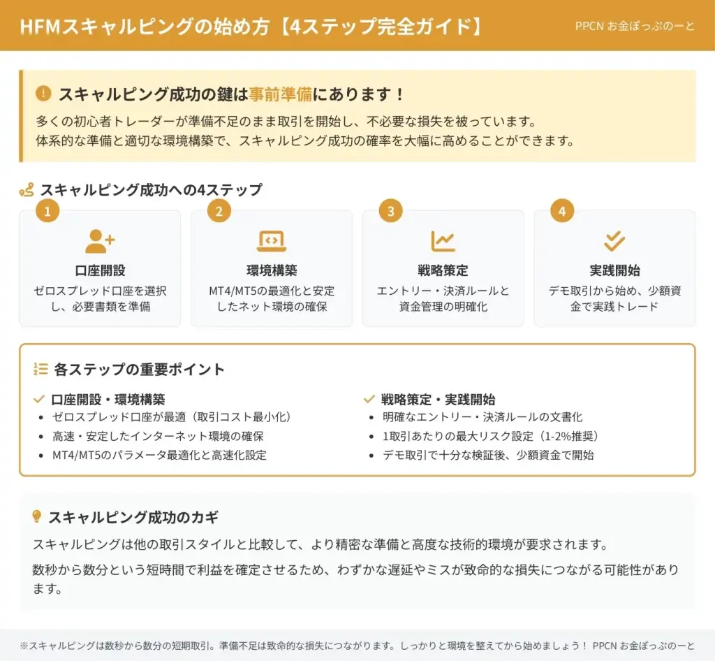 本記事では、HFMでのスキャルピング取引の可否から、最適な口座タイプの選び方、具体的な始め方の4ステップガイド、実践的な手法とコツ、さらにEA(自動売買)の活用法まで、初心者から上級者まで必要な情報を網羅的に解説します。