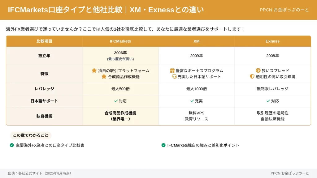 - IFCMarkets口座タイプと他社比較|XM・Exnessとの違い