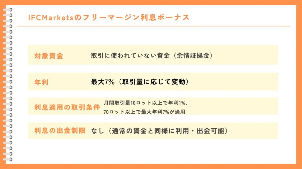 その他フリーマージン利息ボーナスについてはこのような特徴があります。
