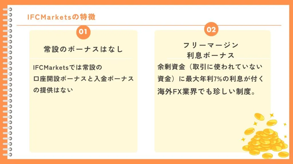 IFCMarketsの開催中のボーナスはフリーマージン利息ボーナスのみとなっています。