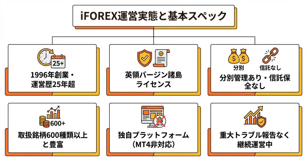 このセクションでは、iFOREXの運営体制と基本スペックを整理し、安心材料となる情報を確認していきます。